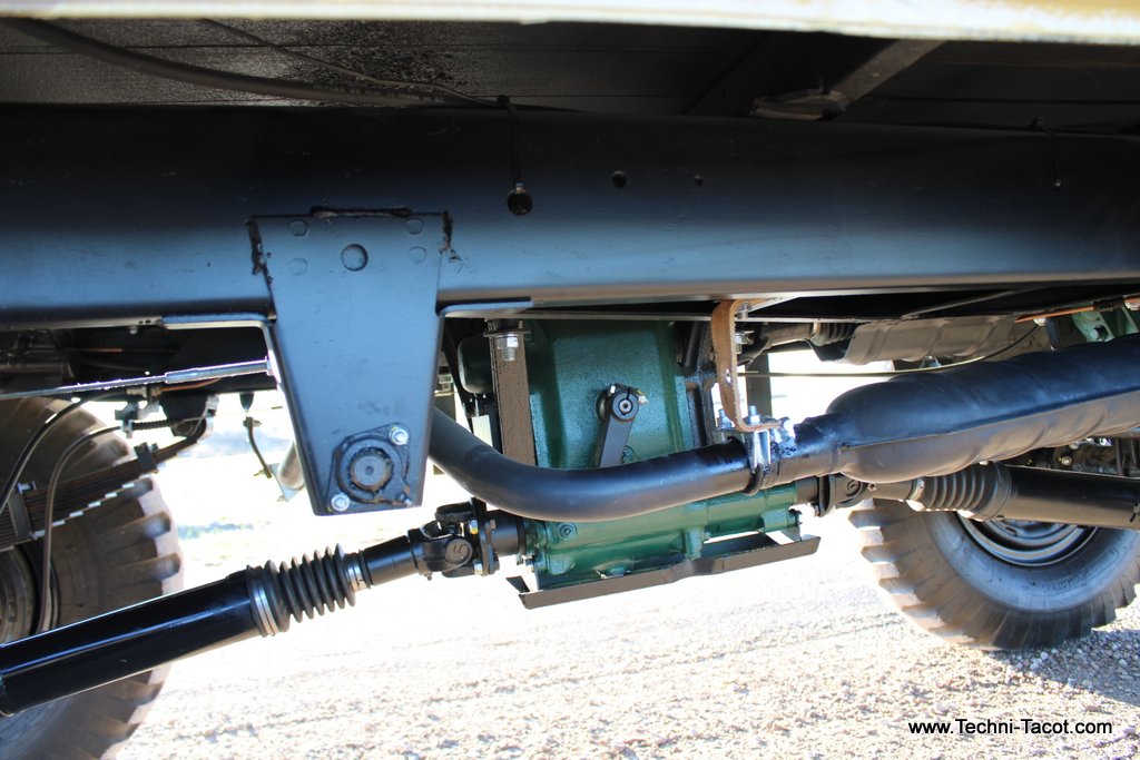 Le véhicule est équipé d’une boîte de transfert et de ce fait possède 3 arbres de transmission. Ces liaisons mécaniques sont très souvent l’origine des nombreuses vibrations ou bourdonnement perçus dans la cabine. Parents pauvres aussi lors de remise en route sommaires, ces pièces sont à prendre en compte si on désire obtenir un fonctionnement le plus silencieux et confortable possibles.
