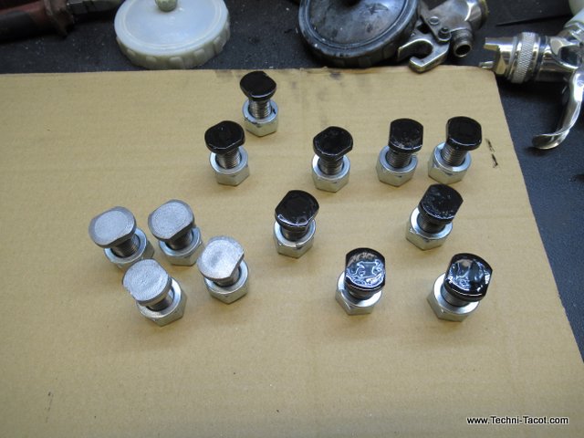 Force a été de constater qu’il y avait bien des pistons dans les quatre chemises. Nous avons trouvé original, les coloris allant de l’ocre au noir charbon. Cela dit, même si nous accordons une place importante à l’esthétique de nos travaux, ce genre de découverte nous oblige a réserver l’usage de ces pistons à des réalisations artistique, mais rien de mécaniquement fiable.