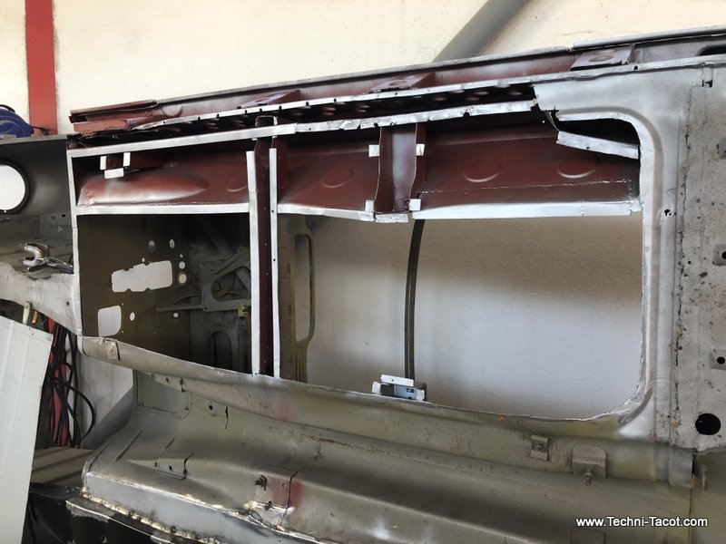 Reconstruction des différents renforts, longerons des soubassement. Lorsque tous les caissons ont été reconstruits et les planchers posés, il est possible de dire que la voiture est sortie d’affaire. Certes il reste un travail encore conséquent, mais la question sur les éléments structurel est soldée. Ouf !
