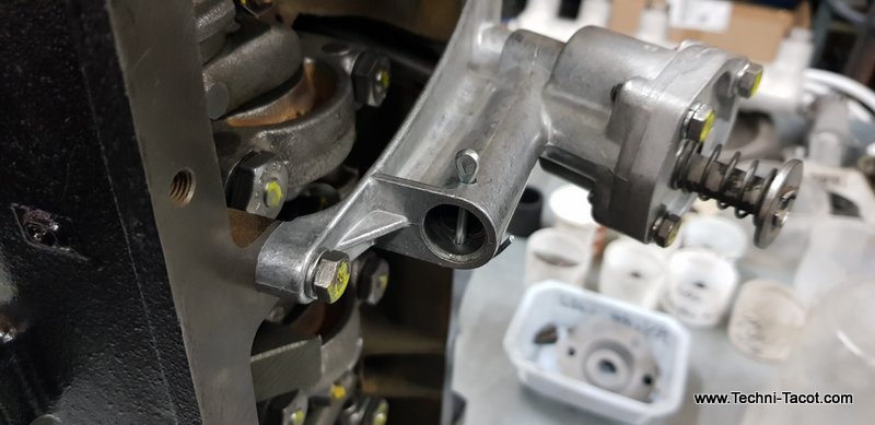 La reconstruction d’un moteur est une succession de vérifications, de contrôles pour s’assurer que toutes les pièces se sont bien mises en place, ont conservé leur degré de liberté, sont serrées et verrouillées, et autres. Avant de refermer le carter d’huile, je vérifie qu’aucune bielle n’est contrainte d’un côté ou de l’autre de son piston. Sinon, c’est le serrage assuré.