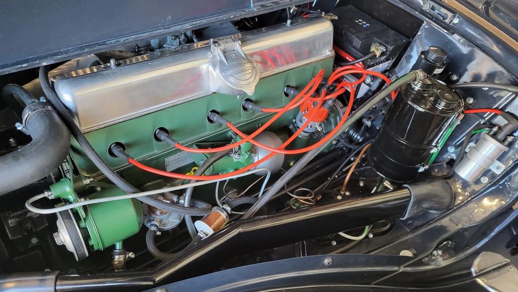 L’utilisation du 12V permet de monter une direction assistée électrique, rendant la conduite de ce lourd véhicule un jeu d’enfant pour les manoeuvres lentes. Par la même occasion un allumage électronique remplace discrètement l’allumeur d’origine et une pompe à carburant électrique, facilite la montée de l’essence au carburant, évitant ainsi de devoir tirer sur le démarreur inutilement lorsque la voiture a été stationné quelques jours sans utilisation.