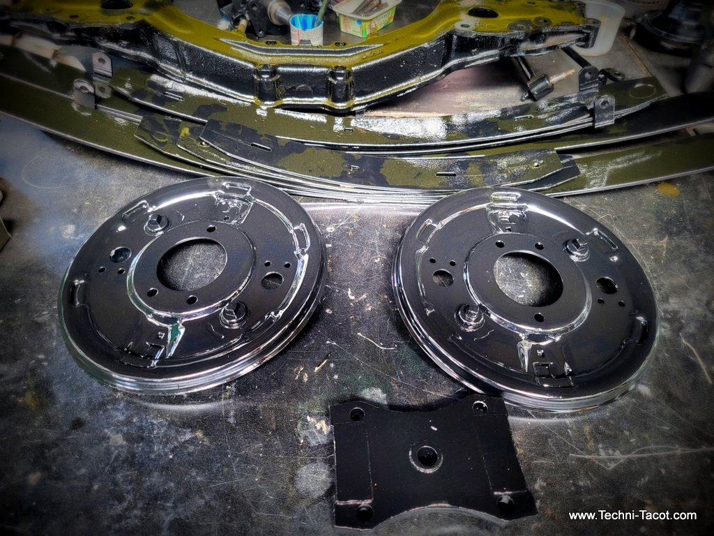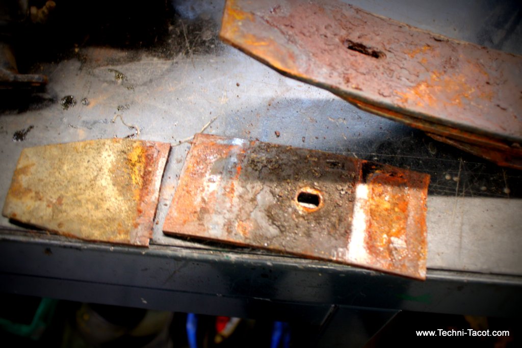 - les bras arrière avec support d’amortisseur sont percés par corrosion : de la tôlerie en préparation !