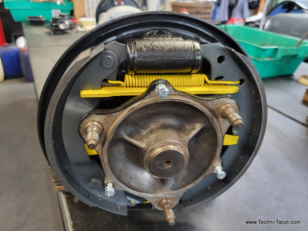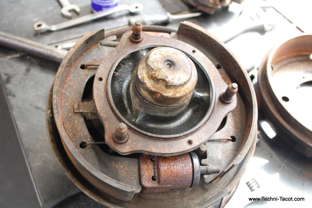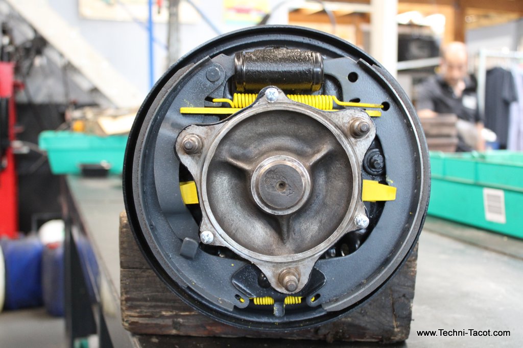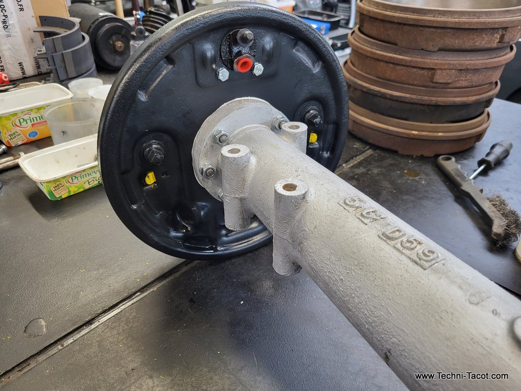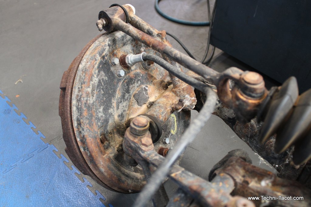 Freinage : comme à l’accoutumée, nous remplaçons cylindres, maître-cylindre, flexibles, canalisations, mâchoires. Notre approvisionnement provient de France pour l’hydraulique et les mâchoires. La qualité est au rendez-vous et je dors sur mes deux oreilles !
