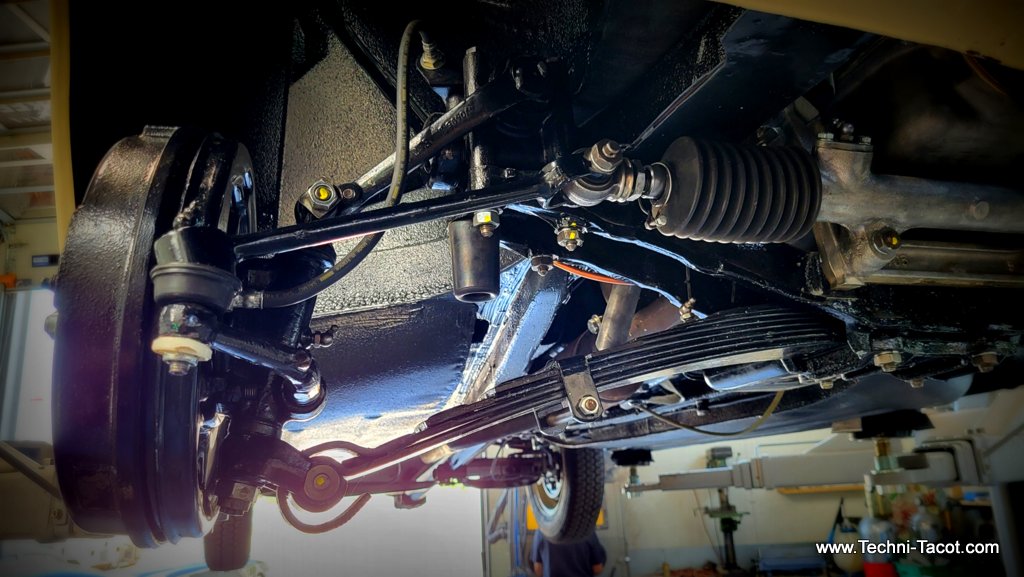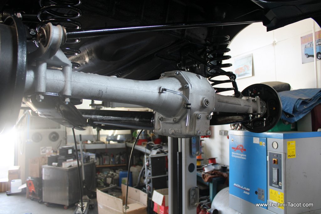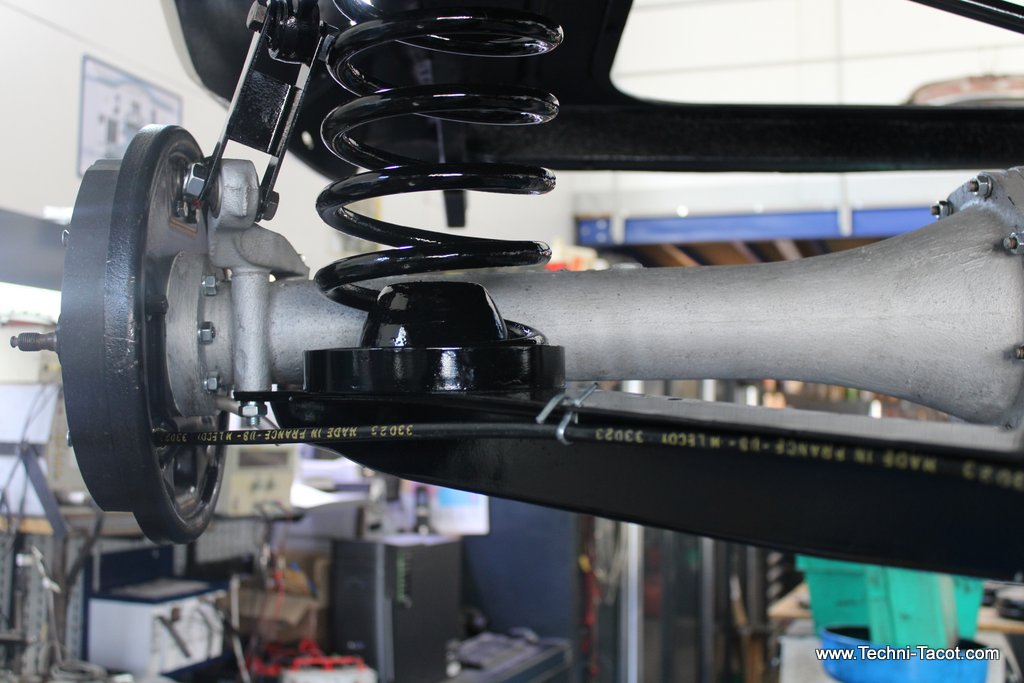 Puis le train avant complet est remis en place sur la voiture et c’est une bonne nouvelle de la voir de nouveau sur ses roues.